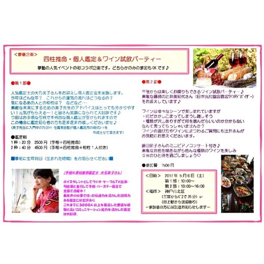 昨日は神戸市北区にて、夢塾さん主宰・個人鑑定会とワインパーティに参加させて頂きました。