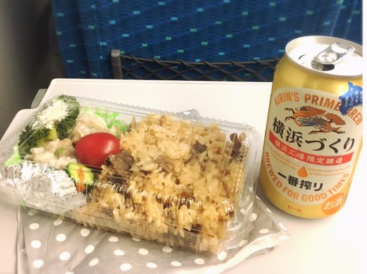 帰りには手作りのお弁当も持たせて下さいました。お疲れビールと共に、新幹線のお楽しみ!美味しく頂きます。