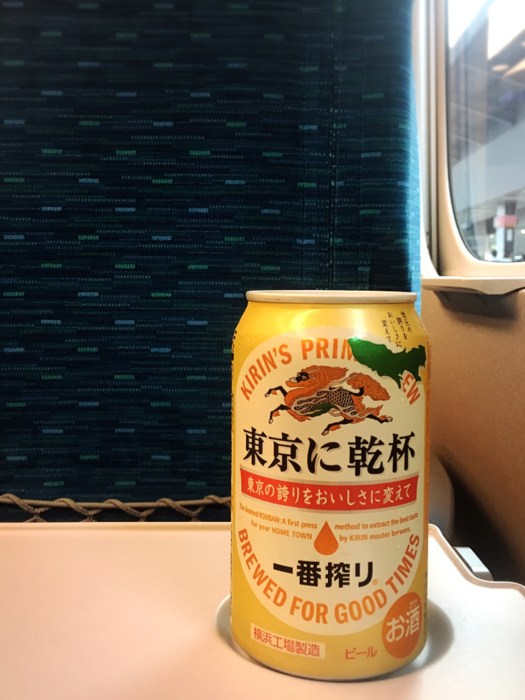 帰りの新幹線で飲むおつかれビール。あー終わったなーと感慨深く東京に乾杯。