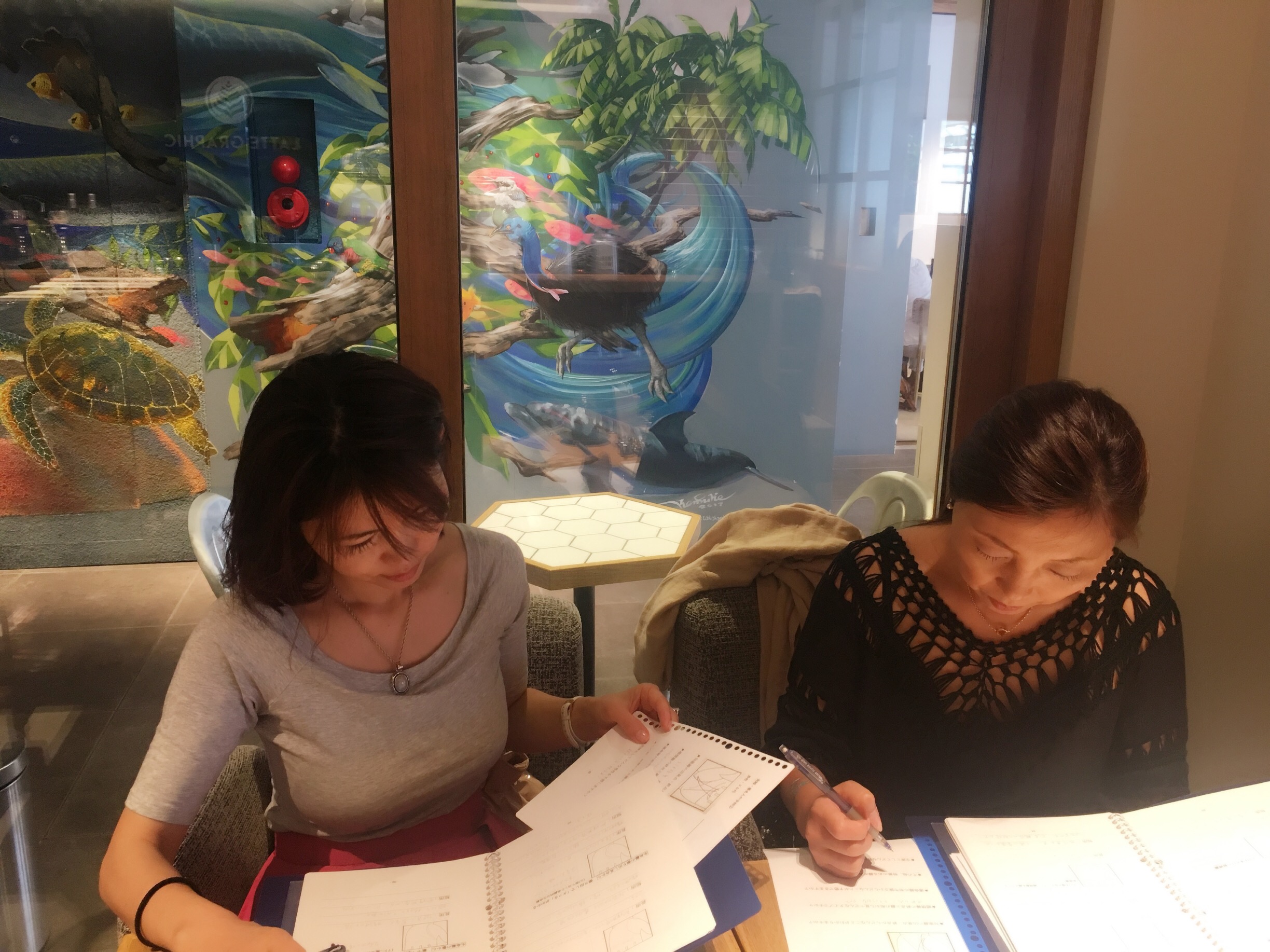 合間に手相と四柱推命の東京の生徒さんにレッスン。