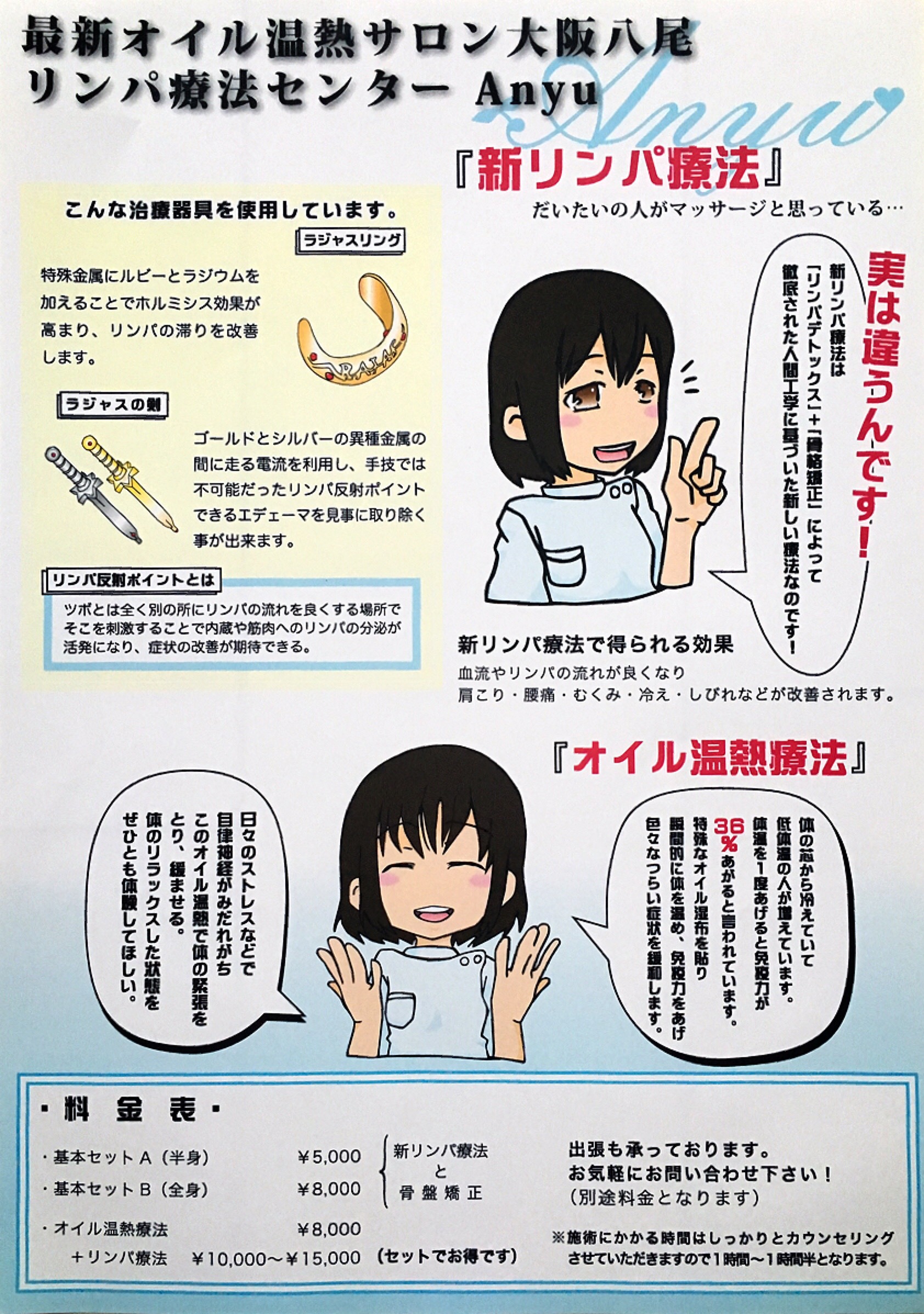 たえこ治療院のリンパ療法はご覧の通り。