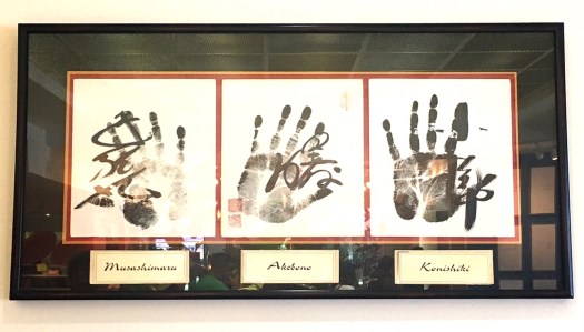 入り口に、何故かきんさんぎんさんとお相撲さんの手相が。