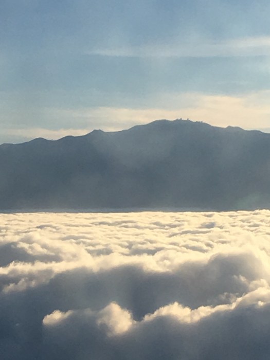 帰りの飛行機から、マウナケア展望台がはっきり見えました。(山頂の小さな突起のような)