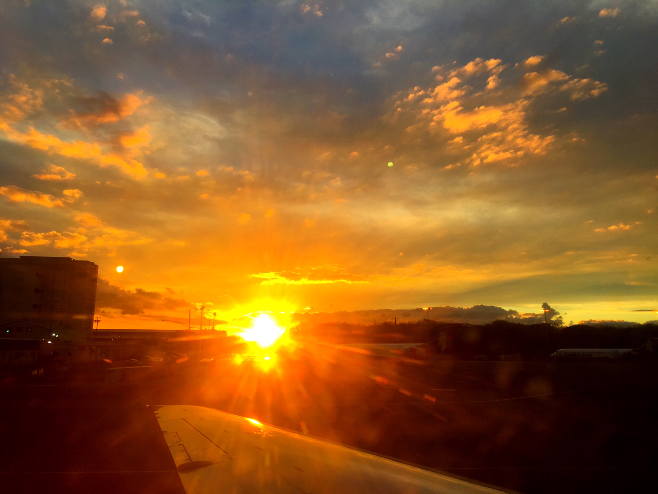 1時間でオアフ島へ。今日の夕日は空港で。