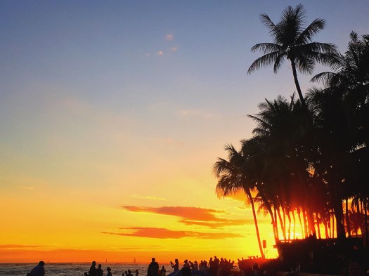 このあと訪れたヒルトンハワイアンヴィレッジで、偶然にも大ホールでフラの大会を拝見。きっとフラの世界では超有名人であろう方のソロがすごくて、満員の会場がスタンディングオベーション! 入り口が開いていて、たまたま後ろで立ち見していたフラの知識のない私でさえも目を奪われる踊りでした。