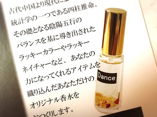 四柱推命から導き出したラッキーカラーやラッキーネイチャーを基に、あなただけのオリジナル香水をその場で作成する「開運香水」。