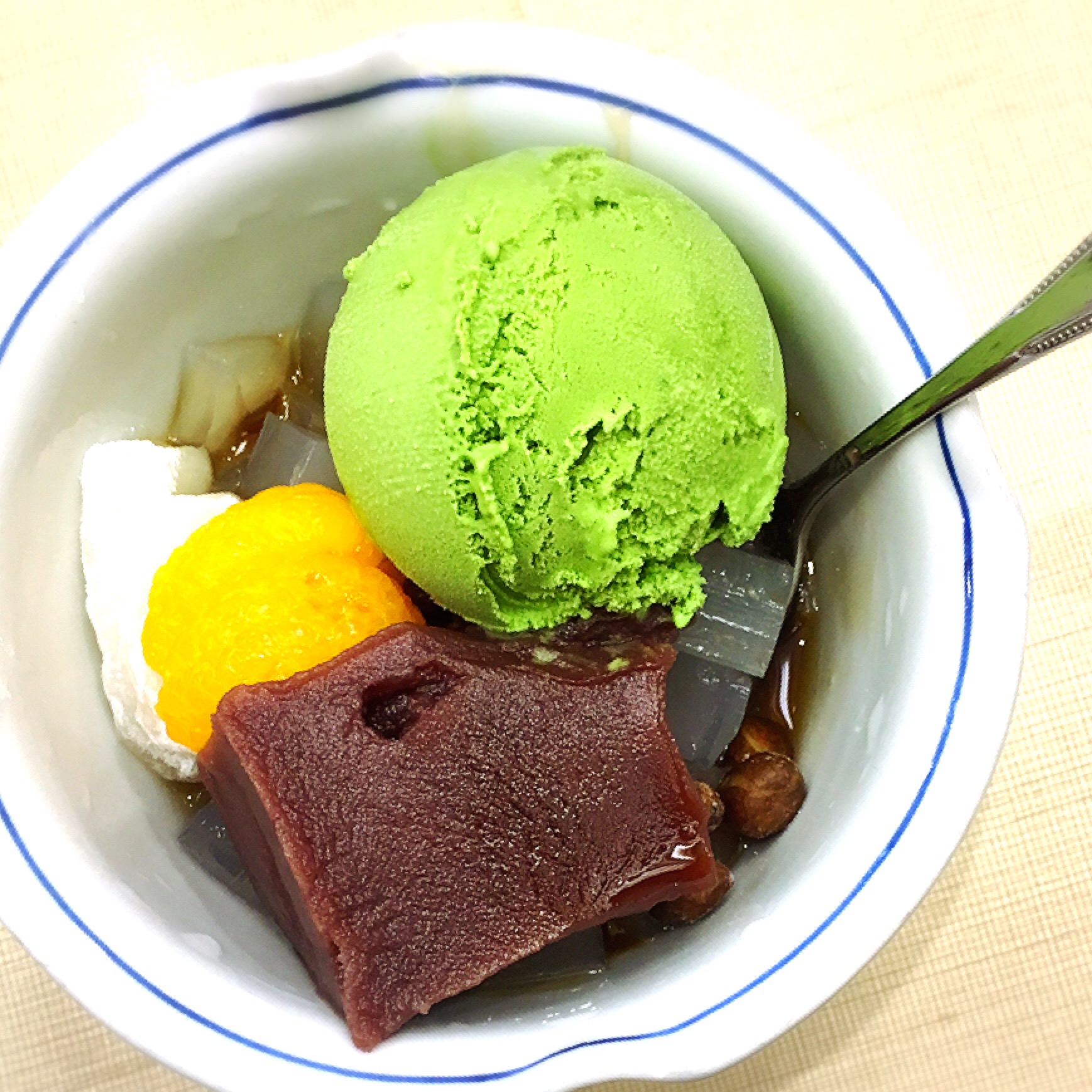 東京駅構内の「上野のあんみつ屋 みはし」で抹茶あんみつ。プチ観光気分満喫できました。