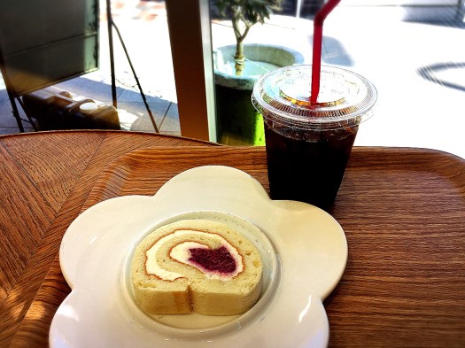 梶浦さんにお迎えに来ていただくまでの間に藤枝グルメを堪能すべく、食後はお店を変えて、藤枝産紅茶を練り込んだ藤枝ロールを。