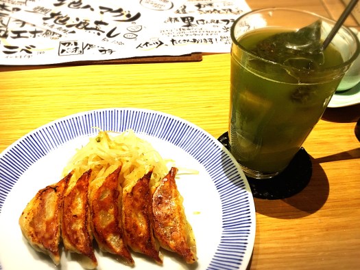 鑑定会も無事終了。帰りに静岡駅前で一杯。静岡ならではのお茶割りチューハイと浜松餃子を頼んだら、お茶パックが浮かんでて驚愕!!