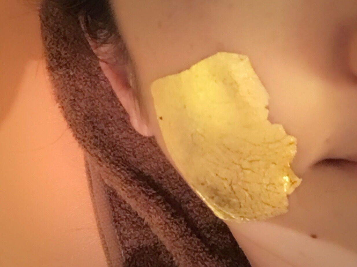 今回、私は右側に歪みがあったらしく、全身施術のあと、右頬のみの金箔。術後は明らかに左頬より上がっております!!