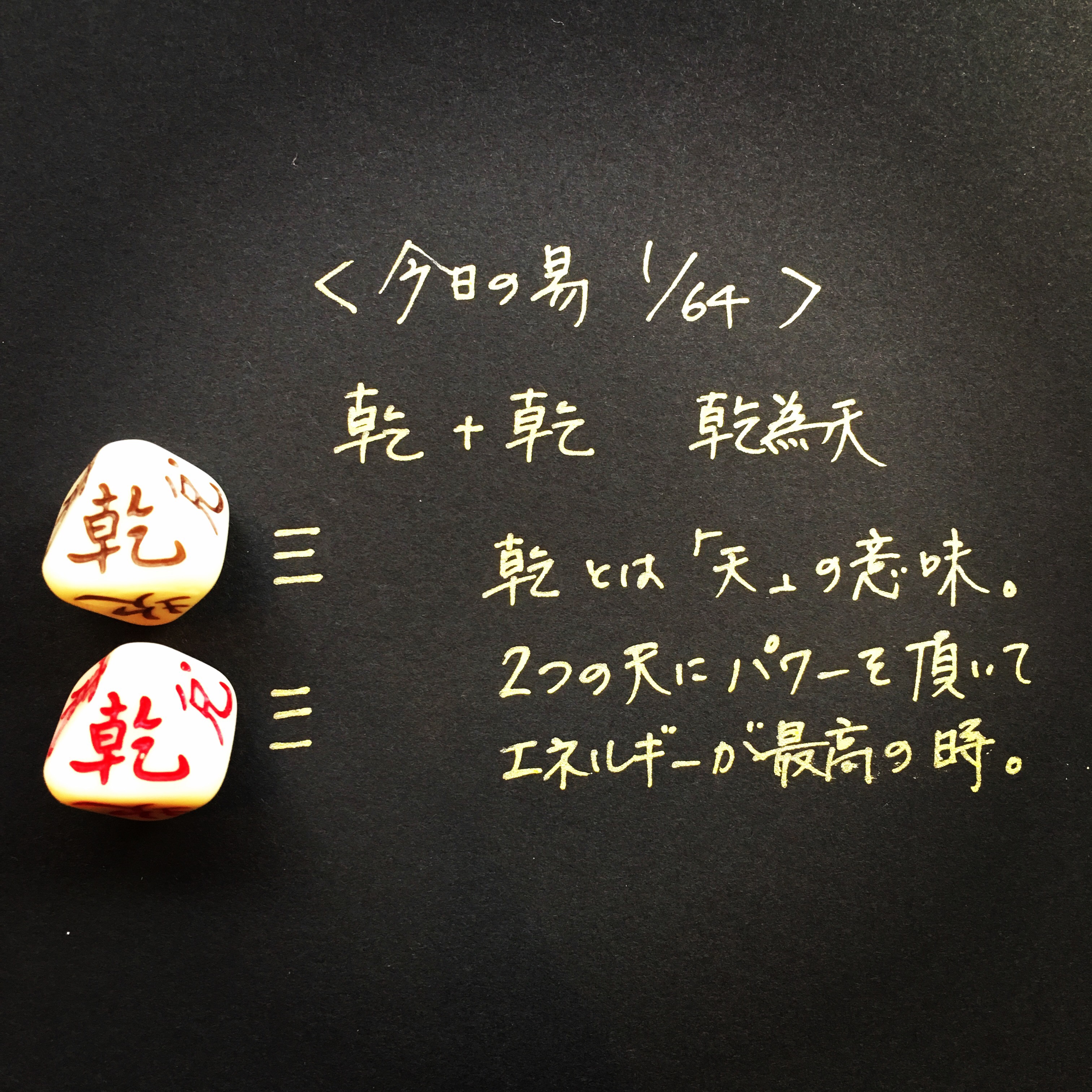投稿日: 2017年11月1日2017年11月1日 投稿者: eikoohishi今日の易 1/64 自身の勉強と暗記も兼ねて。易の教えは先人の知恵だなぁとつくづく思います。 【乾為天】 2つの天からの恩恵を受けて、パワー最高の時。こんな時こそ驕らず謙虚に行くべき、との戒めも先人は教えてくれています。 大きな2つの天のパワーだからこそ、受け取る方もそれに相応しい人格でなければパワーに負けてしまうような気もします。こんな卦が出た時は、糠喜びせず一層気を引き締めて事に当たらねば、ですね。 シェア大歓迎です! Facebook で共有するにはクリックしてください (新しいウィンドウで開きます) Facebook クリックして X で共有 (新しいウィンドウで開きます) X