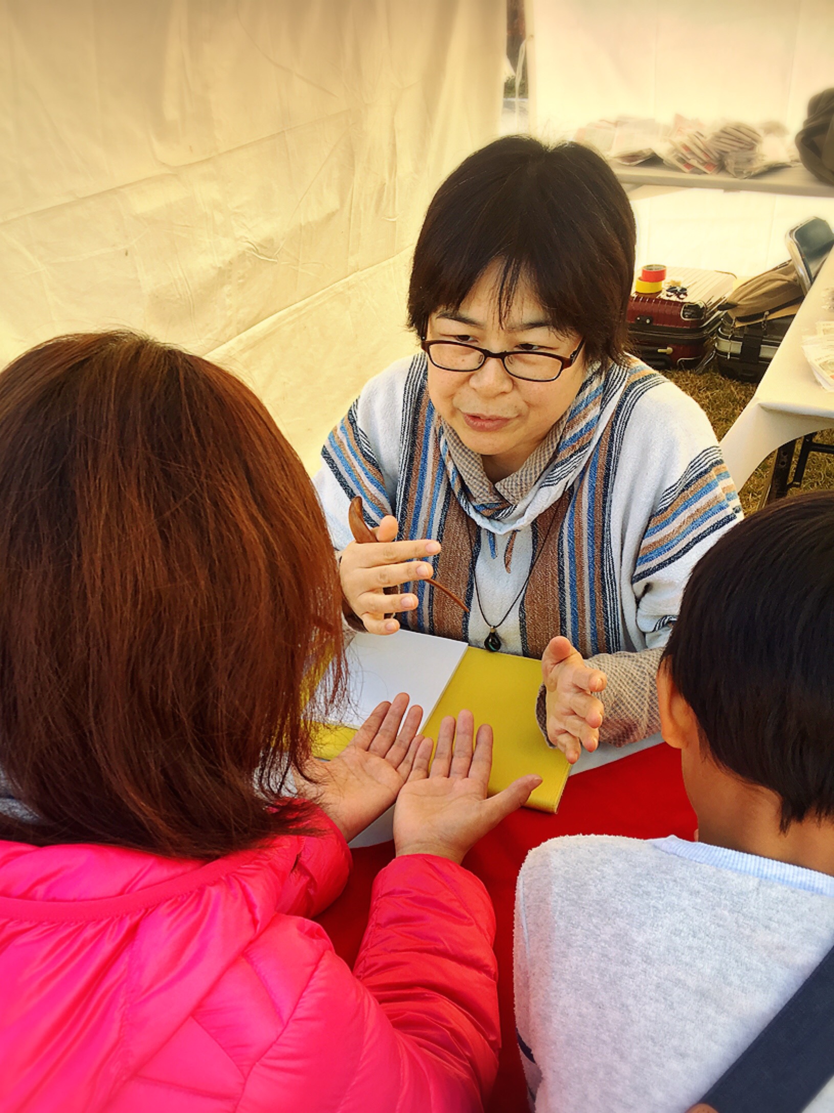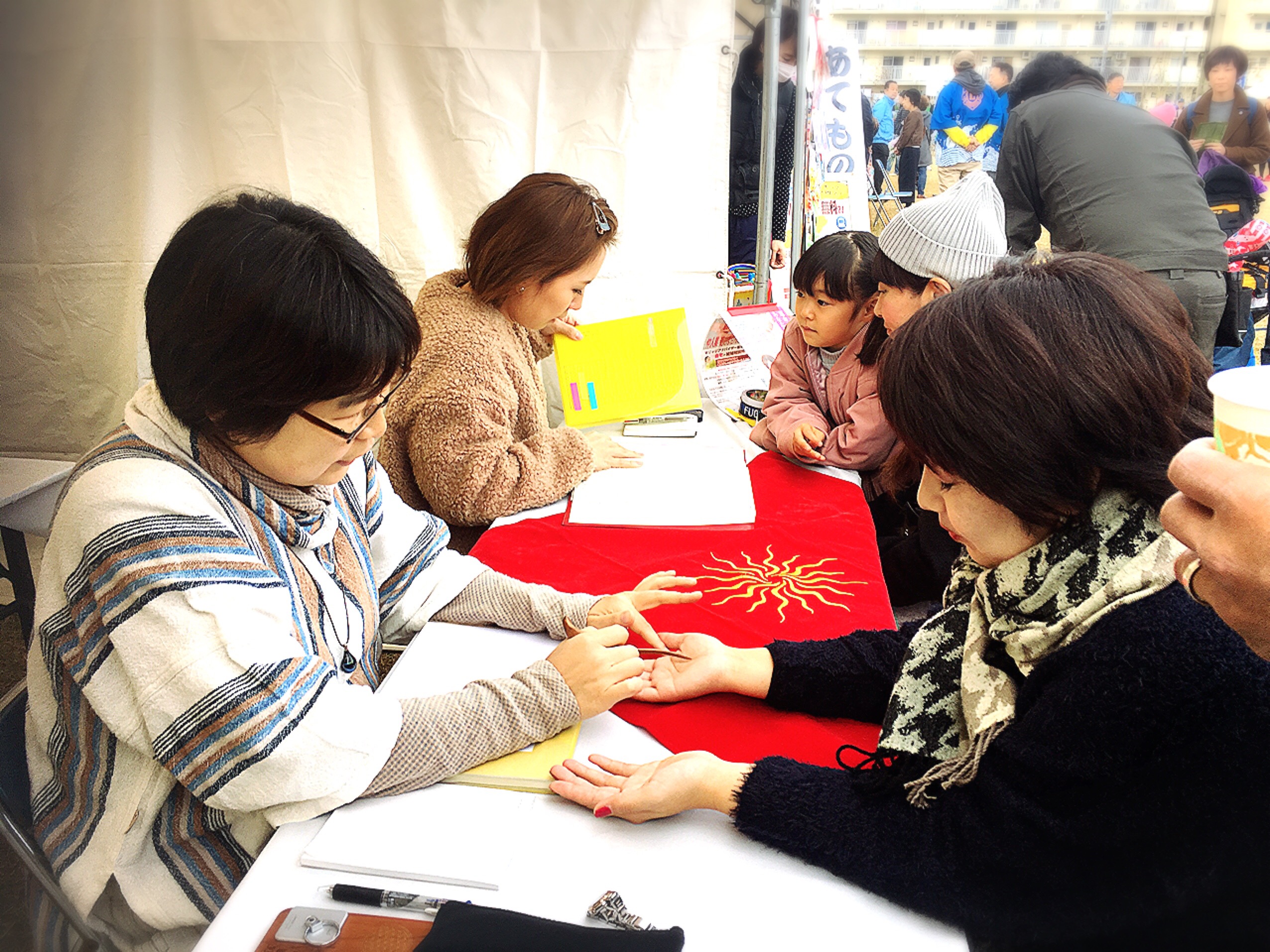 ファミリー層の多い街。小さなお子さんの手相やお誕生日をたくさん拝見できるのもおまつりブースの醍醐味です。