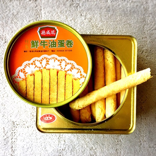 ③10年前にも買った徳成號のエッグロール。赤缶がオリジナル、オレンジ缶がバター多め、緑缶がココナッツ味。日本人の口に合うのはオレンジ缶。ほろほろさくさく。壊れやすいので手荷物で持って帰ってきました。