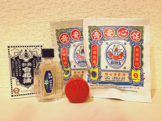 ①かわいい薬局アイテム。肩こりに効く軟膏と、定番白花油。