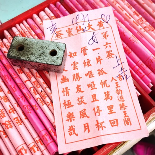 黄大仙でのおみくじ占い。もちろん占い師さんから説明受けましたが、漢詩マニア(!)の高校時代の同級生が訳してくれました。
