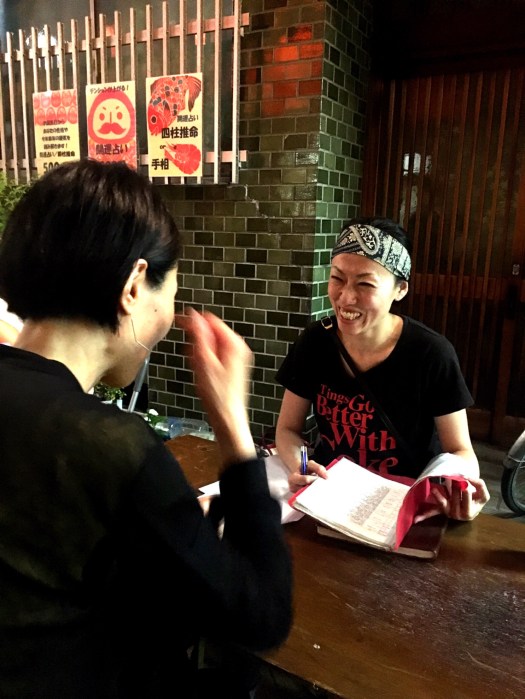 夜の帳が降りる頃にはますます行列が。チヂミを完売された柚野さんにも、鑑定にご協力をお願いしました。