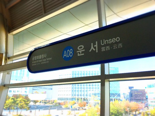 11/2 朝9時発の飛行機で韓国へ。5時間半のトランジットを利用して、空港から電車で2駅先の「雲西(ウンソ)」へ。