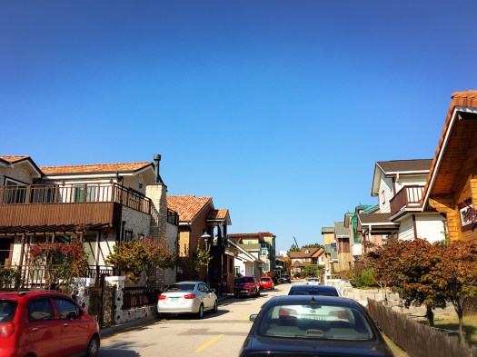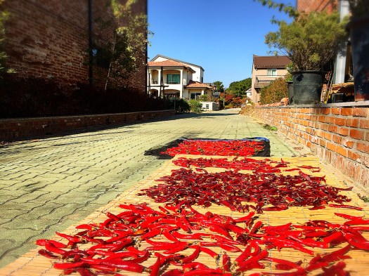 韓国料理大好き!街の定食屋さんでお昼ご飯食べて、大通りの向こう側をさんぽ。高級住宅街でした。唐辛子干してる。お国柄。