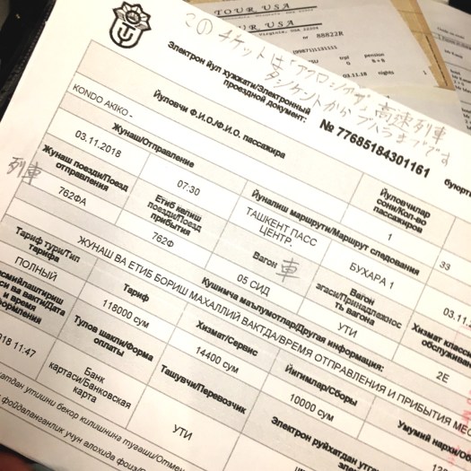 11/3 早朝のタシケント駅。ここから高速鉄道に乗って、ブハラまで4時間半の列車旅。