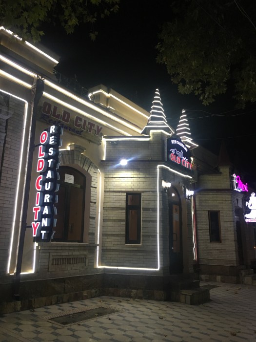 夜の街を歩いてレストランへ。街灯が少なく人もほとんど歩いておらず。極めつけは歩道と車道の間に大きな側溝があり、横断歩道を渡る時などうっかりはまりかけました。暗くて怖いよ…。