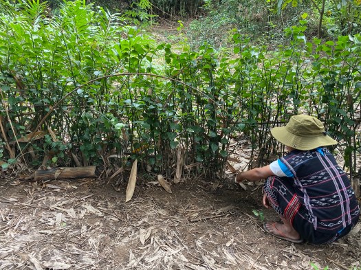 ここでしかとれない胡椒の木や薬草、香草。たとえ雨で湿ってしまっても燃えやすい薪。みなさんどの植物にも本当に詳しい。シナモンの葉からは本当にシナモンの香りがしました。↓