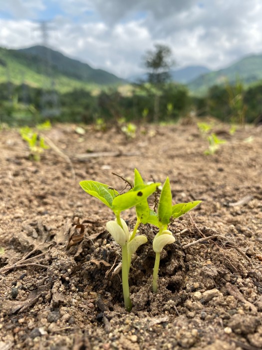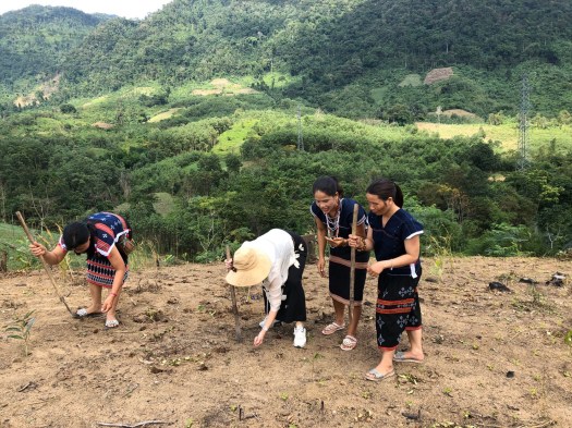 決して肥沃とは言えない山の斜面に鋤で軽く穴を掘り、大豆を撒いていきます。村の貴重なタンパク源。